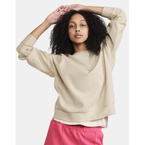 Sweatshirt i lite oversize dammodell med en ribbad rund hals och breda muddar på ärmar och fåll som kompletterar den feminina stilen.
